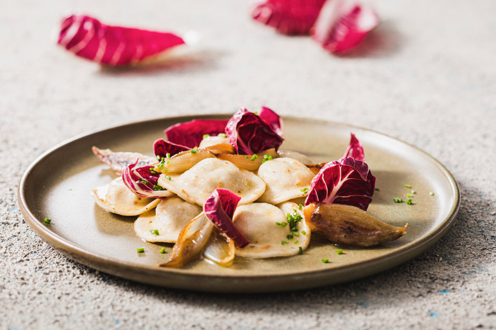 Ajdove polnjene testenine so bogatega okusa, tako da jih lahko postrežemo le s kančkom oljčnega olja ali koščkom masla. Tokrat smo pripravili recept za Ajdove raviole z radičem.