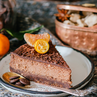 Sočna krema, polnega in bogatega okusa bo razveselila vse ljubitelje čokolade. Čokoladni cheesecake lahko na koncu obogatimo s sadjem, stepeno smetano, ali samo naribano lupino citrusov.