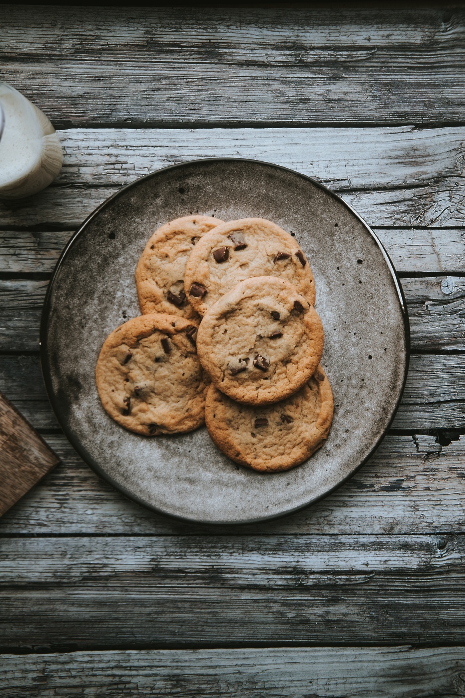 Ko imate testo pripravljeno, dodajte še koščke čokolade. Vzemite jedilno žlico in zajemite testo ter ga zrolajte v kroglico. Kroglio oblikujte v piškot in ga položite na pladenj obložen s peki papirjem. Ponavljajte dokler ne porabite celotnega testa. Pokrijte s plastično folijo in kuhinjsko krpo.