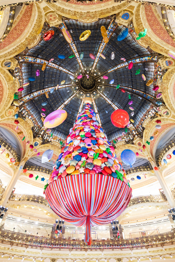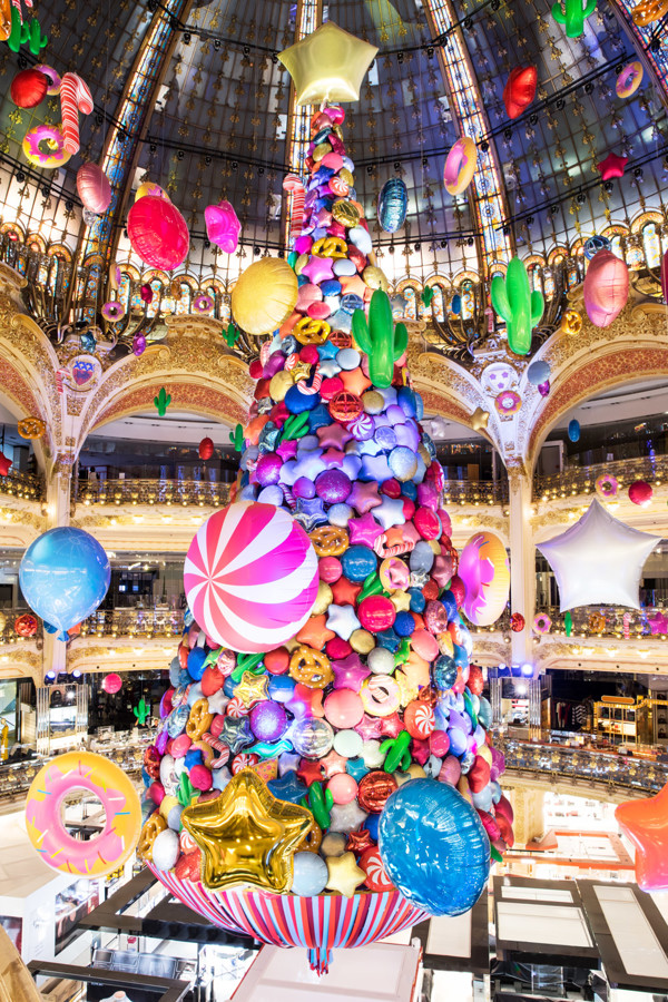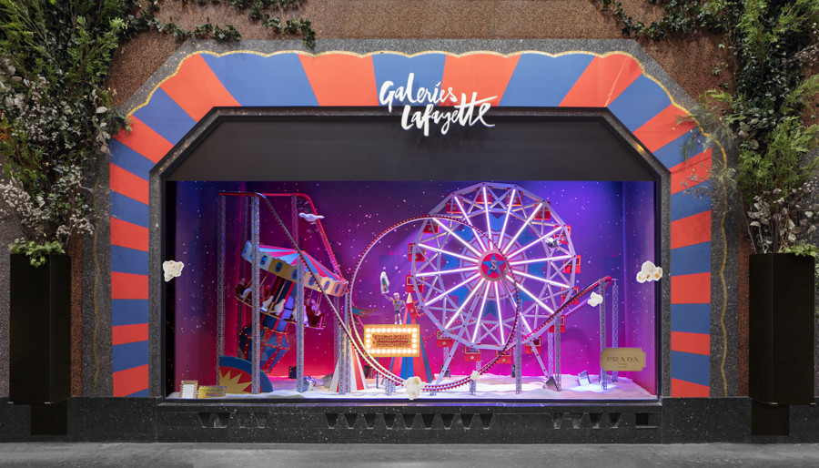 Zgodba znamenite pariške veleblagovnice Galeries Lafayette se je začela leta 1893, ko sta Théophile Bader in njegov bratranec Alphonse Kahn na vogalu ulice la Fayette in Chaussée d'Antin v 14. okrožju odprla 70 m2 veliko modno trgovino. Dandanes se razteza v 10 nadstropjih in vsako leto očara s svojimi božičnimi izložbami. Letos so oživele v znamenju lunaparkov z začetka prejšnjega stoletja. Predstavljajo idealiziran Pariz leta 1920, kjer se srečata surrealizem in art deco, zabaviščni park ponazarjajo kolo sreče, vlak smrti in igralni avtomati, vse skupaj pa spremlja zvok lajne. Osrčje veleblagovnice krasi ogromna jelka iz mavričnih bombonov in balonov – raj za otroke in sladkosnede odrasle.