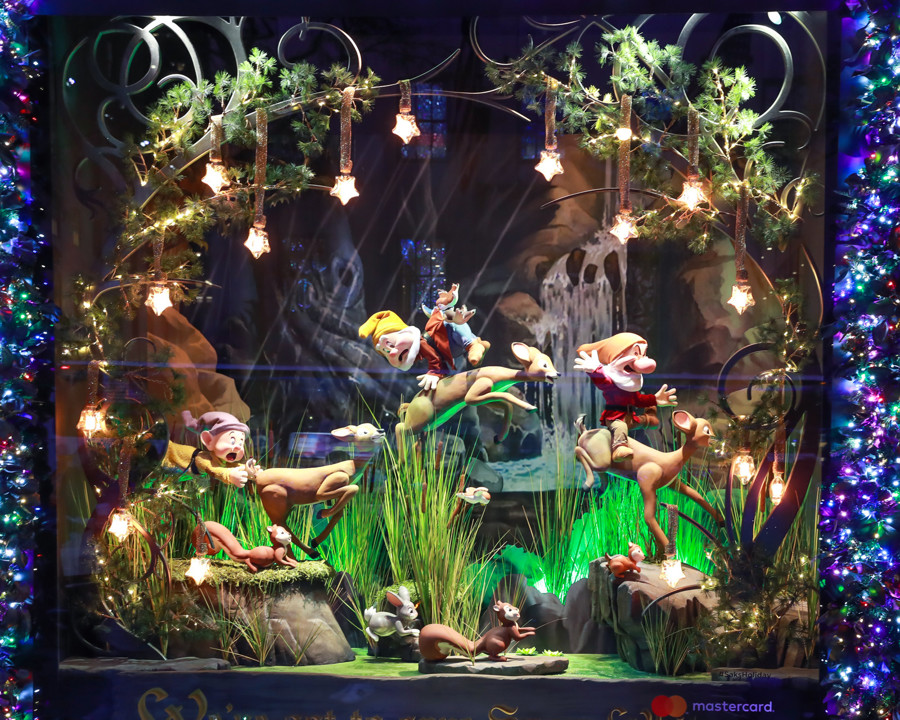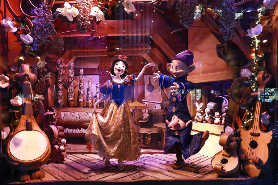 V duhu otroških pravljic se bleščijo tudi izložbe veleblagovnice Saks Fifth Avenue, ki že od leta 1949 razveseljujejo otroke in odrasle. Okrasitev so konec novembra otvorili z desetmetrskim svetlobnim šovom, posvečenim 80. obletnici Disneyjeve pravljice Sneguljčica in sedem palčkov. Tudi vseh 14 izložb na Peti aveniji krasi Sneguljčica, ki pleše med gozdnimi bitji, poje, pospravlja ali pa je v družbi princa, ne manjkajo pa niti palčki in zlobna kraljica. Vsaka izložba prikazuje svoj prizor iz legendarne pravljice bratov Grimm. Izložbe, ki gledajo na 49. in 50. ulico, krasijo kreacije Alberte Ferretti, Naeema Khana, Monique Lhuillier in Marchesa, ki so ustvarili razkošne obleke za »Sneguljčice« 21. stoletja.