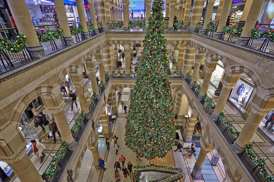 V stavbi nekdanje pošte, zgrajene leta 1895, je osrednja amsterdamska veleblagovnica Magna Plaza. Njihova praznična okrasitev je nekaj posebnega, saj božično drevo visi s stropa. Obiskovalci se lahko sprehodijo pod njim in njegove zlato-rdeče okraske občudujejo iz vseh treh nadstropij.