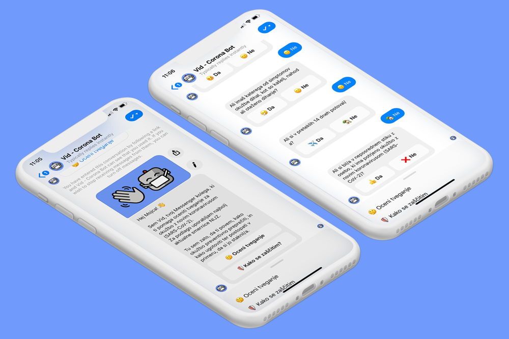 Vid je bot, vgrajen v Facebook Messenger. Z njim lahko preprosto klepetamo preko vprašalnika na temo koronavirusa - o oceni tveganja in nasvetih za zaščito.