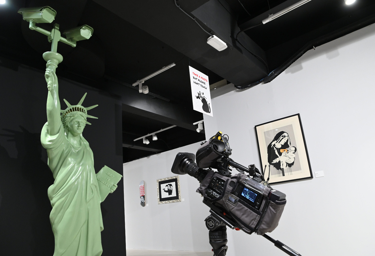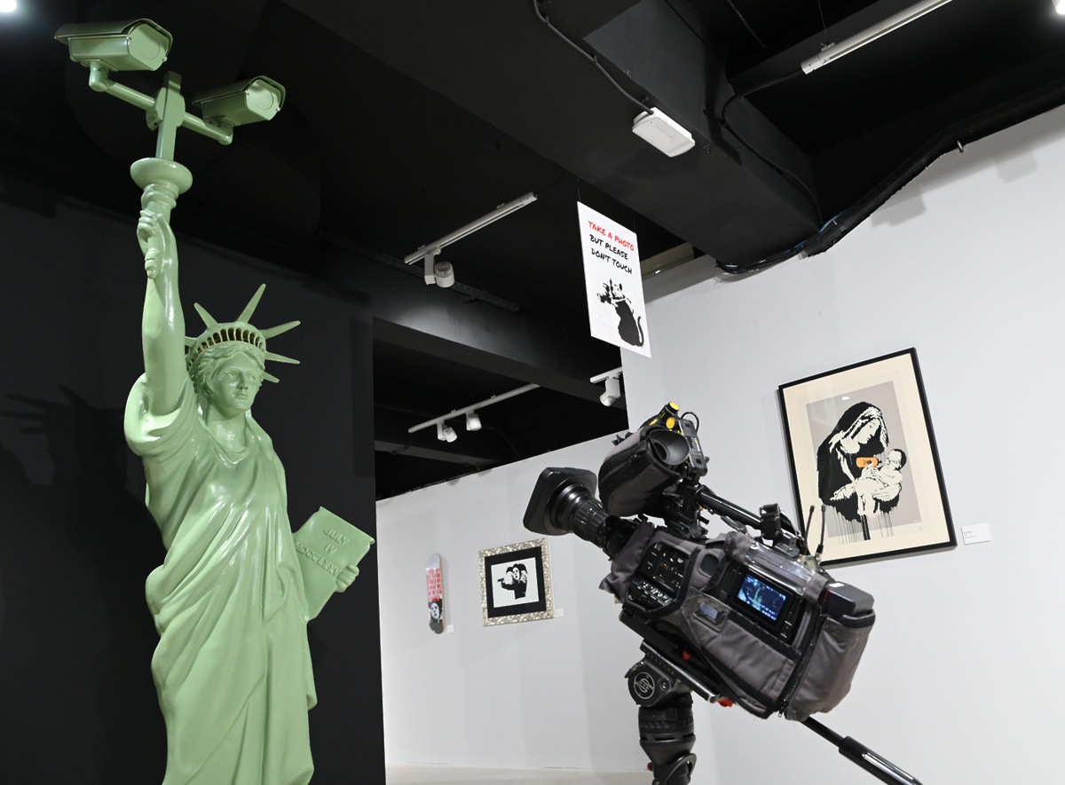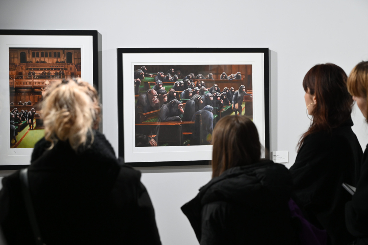 Med umetniki, katerih dela bodo na ogled, so ikone, ki vplivale nanj, na primer Warhol, Picasso in Blek le Rat. Razstava razkriva raznolikost Banksyjevega umetniškega sveta, od njegovih originalnih grafik do ovitkov za različne glasbene izvajalce, plakatov z njegovih prejšnjih razstav, njegovo sodelovanje s projektom The Simpsons.” Med najbolj znanimi Banksyjevimi deli, ki so na ogled, so Flying Copper, Monkey Queen, Bomb Hugger, Flag, Gulf Sale, Toxic Marry, Applause ter ročno našpricana naslovnica za Röyksopp. Prav tako bodo razstavljene plošče z njegovimi prepoznavnimi grafičnimi motivi, kot so Flower Thrower, One Day We'll Be In Charge in Happy Choppers, predstavljeni so tudi njegovi najbolj odmevni umetniški projekti kot so Dismaland, Walled off Hotel, Love Welcomes …